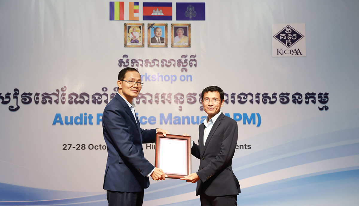 នៅថ្ងៃចន្ទ និងអង្គារ ទី២៧ និង២៨ ខែតុលា គ.ស. ២០២៥ នៅសណ្ឋាគារហ៊ីម៉ាវ៉ារី វិទ្យាស្ថានគណនេយ្យករជំនាញ និងសវនករកម្ពុជា (វ.គ.ស.ក.) បានរៀបចំសិក្ខាសាលាក្រោមប្រធានបទ “សៀវភៅណែនាំអំពីការអនុវត្តការងារសវនកម្ម” ដែលជាផ្នែកមួយនៃកម្មវិធីអភិវឌ្ឍន៍វិជ្ជាជីវៈបន្តរបស់ វ.គ.ស.ក. ជាពិសេសដើម្បីពង្រឹងសមត្ថភាពសវនករដែលជាសមាជិកក្នុងការអនុវត្តការងារសវនកម្មឱ្យកាន់តែមានប្រសិទ្ធិភាព។